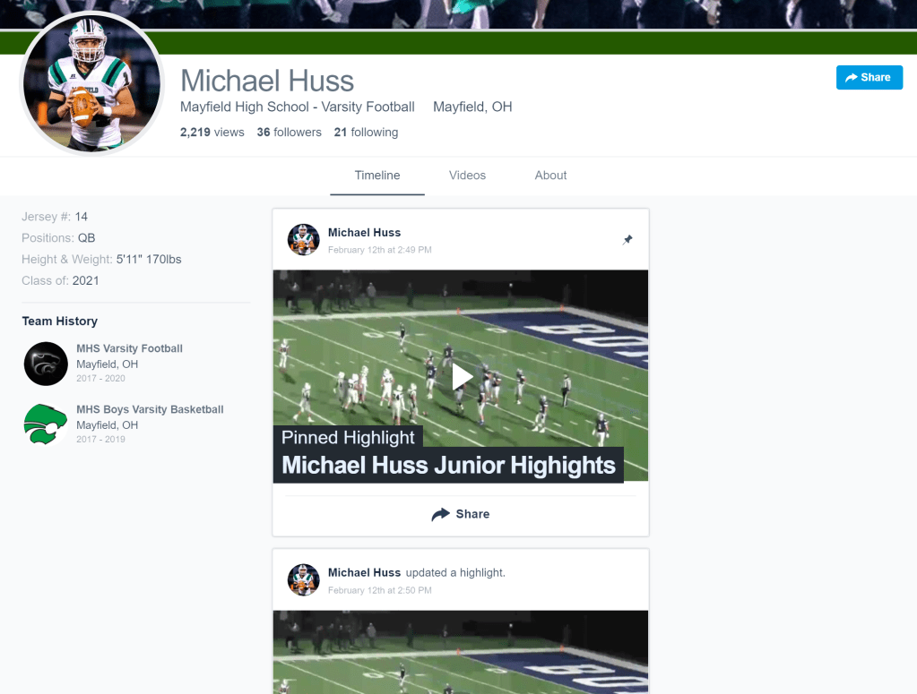 Graduating class of 2021, 3-year lettermen, team captain sophomore and junior years, 3 time All Conference Western Reserve Conference, 2 time all district, 2 time all News Herald, Tony Fisher player of the year finalist, Offensive MVP freshman, sophomore, junior seasons. Entering senior year as 3 year lettermen in football, track, basketball